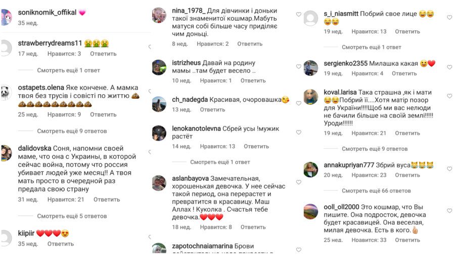 Дівчинка, на ім’я Соня, хвацько знімає фото і відео. Нічого, здавалося тут сенсаційного немає: багато діток навіть молодше 10 років вже вміють створювати та викладати контент в інтернет. Та хейтери знайшли за що зачепитися. У коментарях під публікаціями почали активно критикувати зовнішність дочки поп-діви.