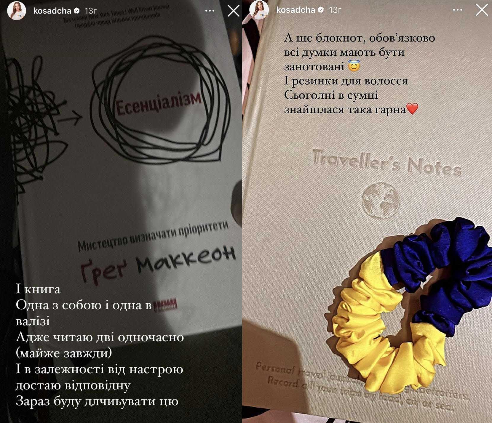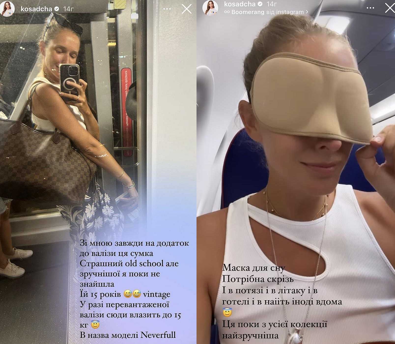 Торба за 2 тисячі доларів здатна вмістити 15 кг важливих у дорозі дрібничок. Тому Катя й не думає відмовлятися від цієї сумки. Що вона туди складає? Відповідь можна знайти на світлинах, які Осадча виклала днями в Сторіз.