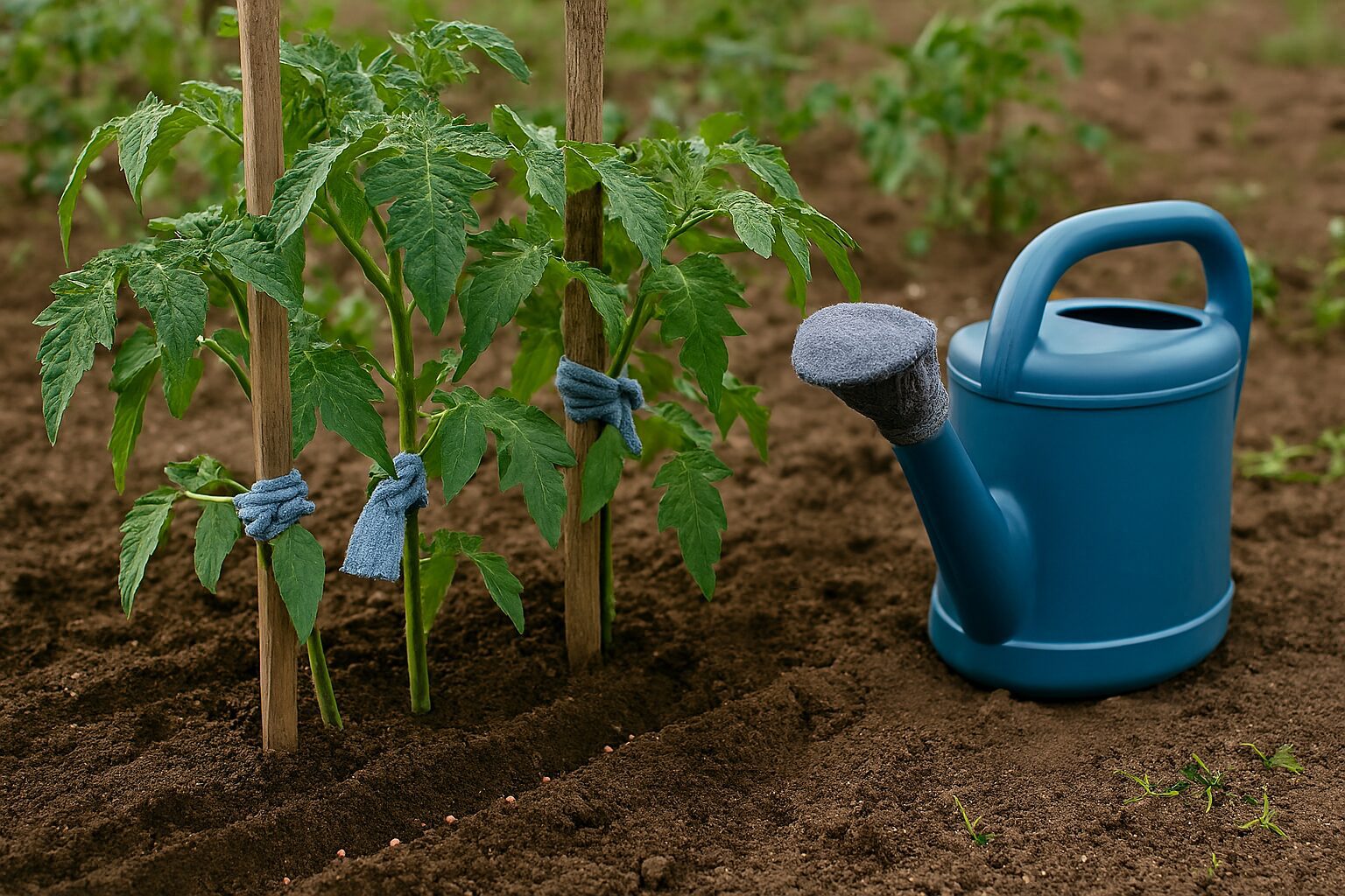Нарізала 1 діряву шкарпетку на смужки: вистачило, аби підв’язати усі кущики помідорів – 5 лайфхаків