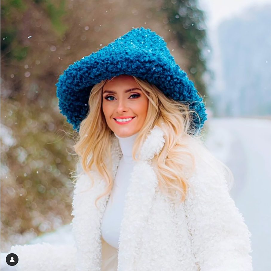 Співачка вбралася у білу кошлату шубку та дивацький капелюх кольору морської хвилі. І хоч він не червоний, Ірина у такому прикиді дуже нагадує гриб або казкового гномика. Привід для радості в артистки особливий.