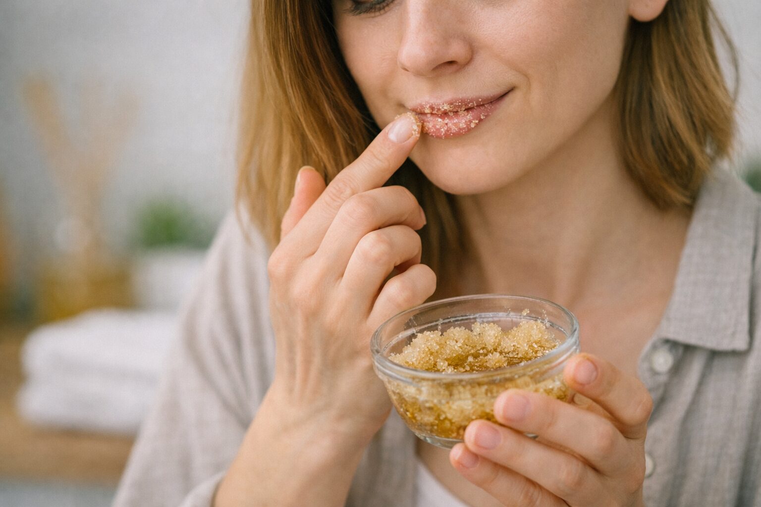 Якщо у вас надміру пересихають губи, то можна зробити їх м’якими за допомогою цукрового скрабу. Візьміть 1 ч.лож. дрібного цукру та змішайте з 0,5 ч.лож. меду. Нанесіть на губи й робіть масаж протягом 1-2 хвилин. Потім змийте водою.