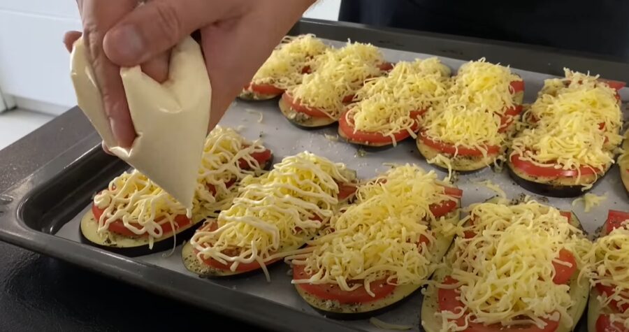 Випікаємо баклажани при температурі 180 градусів 15-20 хвилин. Вони мають добре пропектися, а сир зарум’янитися.