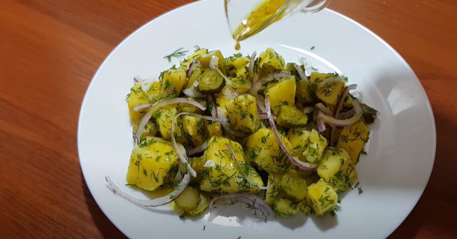 Картопляний салат – це універсальна страва, яка може слугувати як закускою, основною стравою, чи гарніром. Готується цей салат просто, інгредієнти – самі звичайні, а смак виходить неймовірним. До того ж, страва дуже бюджетна. Всі інгредієнти вже є у вас вдома.