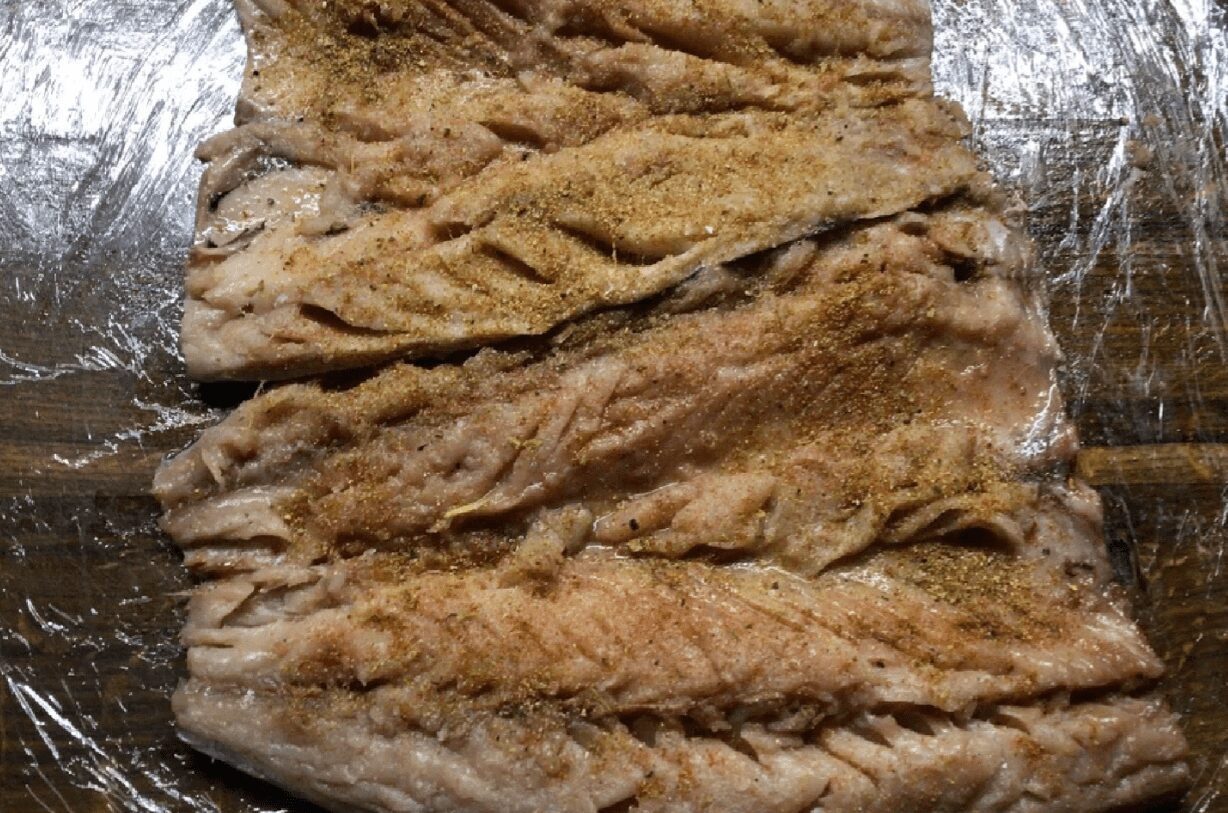 Рибу вимийте, промокніть паперовим рушником, відріжте голову й хвіст. Зробіть надріз уздовж. Видаліть хребти й за можливості маленькі кісточки. Видаліть кишки й чорну плівку.