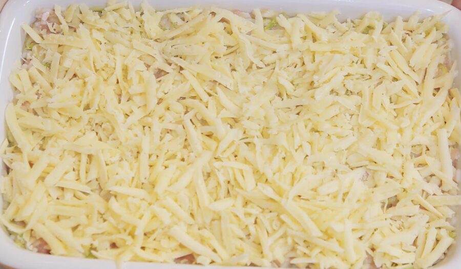 Після цього дістаємо запіканку з духовки, знімаємо фольгу, посипаємо тертим сиром та відправляємо допікатися ще на 15 хвилин. За цей час сир встигне розплавитися. Готову страву треба трохи охолодити і можна подавати, нарізавши на порційні шматочки.
