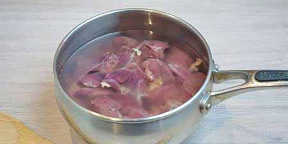 Печінка, яйця й цибуля мають прохолонути. Гарячу печінку з води не витягайте. Нехай холоне в бульйоні, щоб була м’якішою.