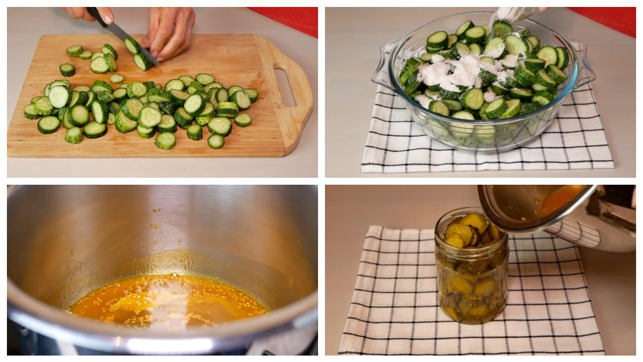 З моменту закипання огірків у маринаді, проваріть їх ще 7 хвилин, постійно помішуючи.
