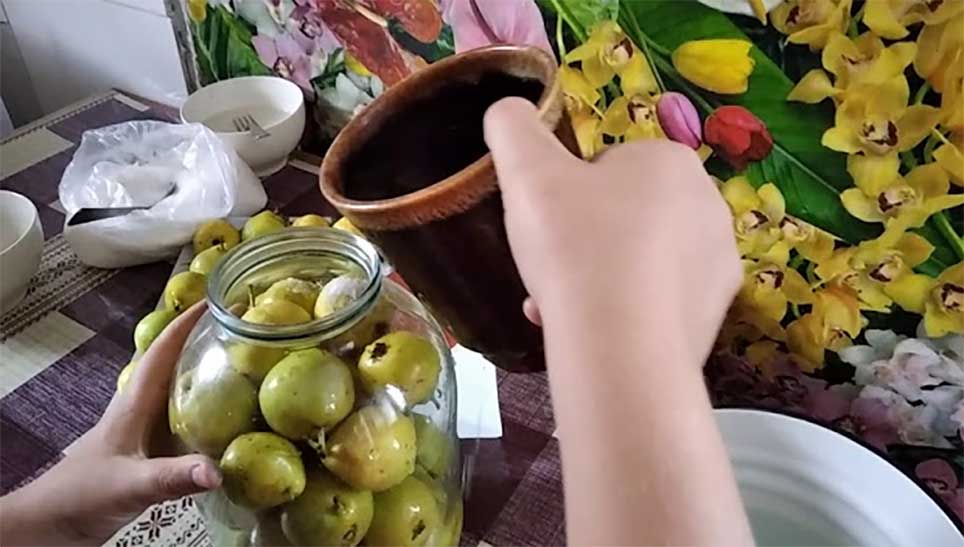 Тепер беріться до сусла, змішавши воду з сироваткою і розчинивши у ній сіль. Додайте гірчицю й перемішайте. Залийте груші так, щоб вони були покриті рідиною повністю. Зав’яжіть горлечка банок шматочком марлі.