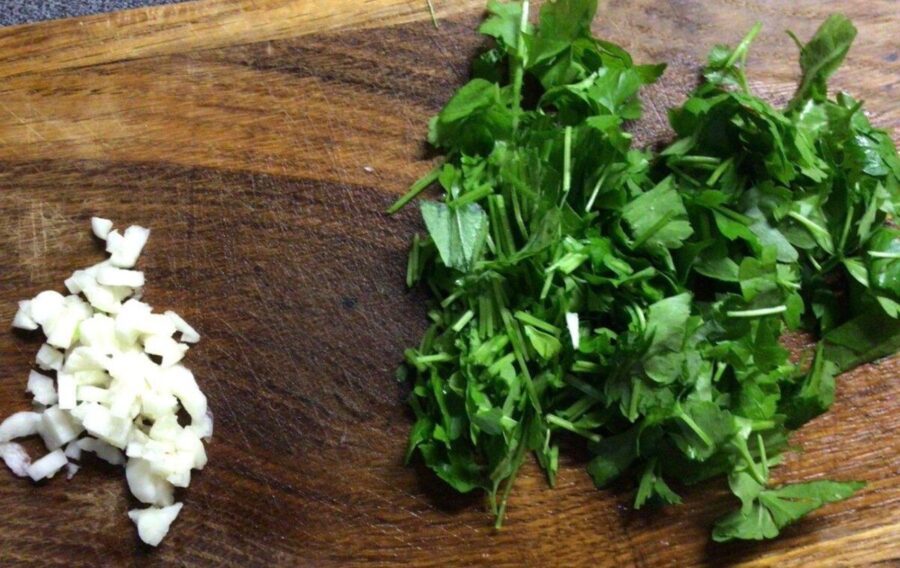 Наріжте зелень і часник