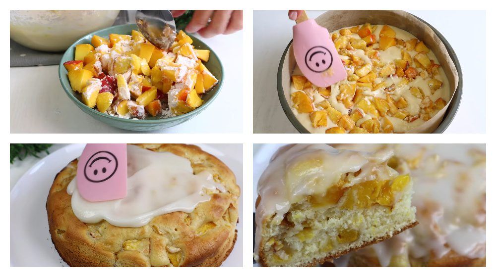 - Тепер зробіть начинку: вийміть кістки з розрізаних навпіл персиків та поріжте плоди на дрібні шматочки. З половини лимона зчистить цедру та змішайте з персиками, а потім змішайте з крохмалем.