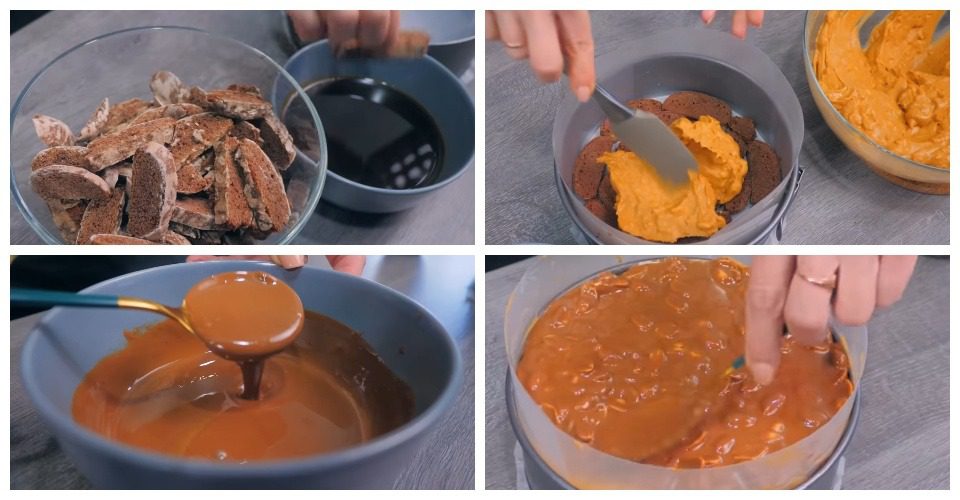 2. Тепер шоколадні пряники поріжте такими шматками, щоб у вас було 4 шари, які розташуються по площі форми.