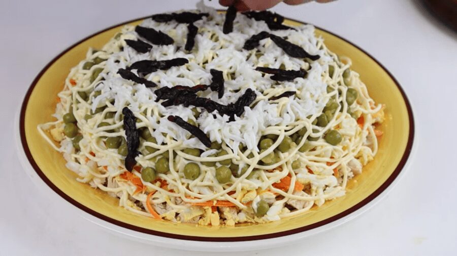 Зверніть увагу, що для цього салату потрібно використовувати майонез високої жирності. Також ідеально підійде домашній майонез.