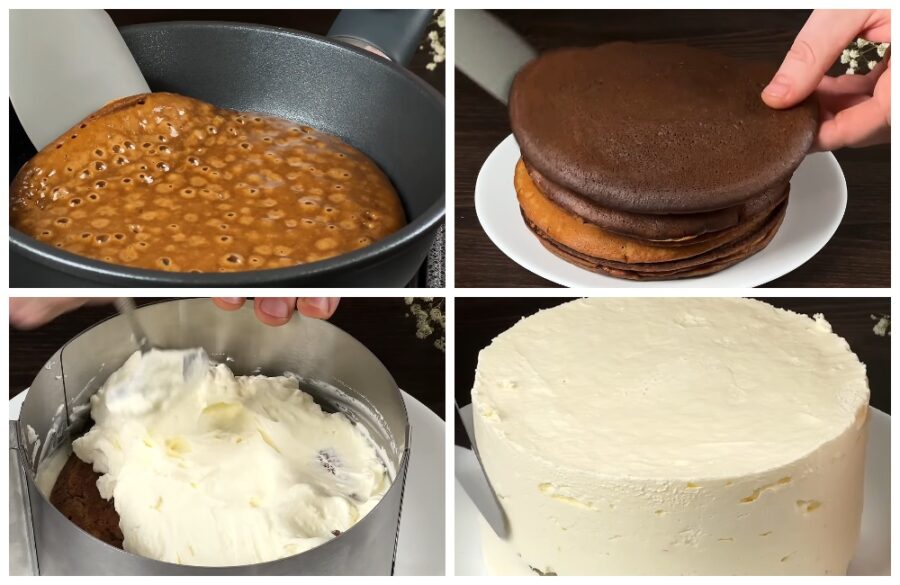 Почастуйте себе та своїх близьких напрочуд дивовижним поєднанням смаків банана та кави. Готується десерт неймовірно швидко, але щоб було зручніше, радимо вам скористатися занурювальним блендером та міксером. Вам також знадобляться одного діаметру пательня та роз’ємна форма для торта.