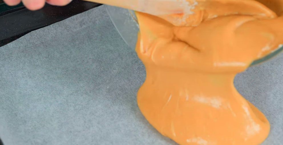 Розтопіть мед у сотейнику, поставивши на середній вогонь. Щойно закипить, зніміть з вогню й всипте соду. Ретельно перемішайте. Знову поверніть каструльку на плиту, тільки на найслабший вогонь і перемішуйте, допоки маса не стане пишною. Зніміть з вогню. Додайте масло, яке має бути кімнатної температури. Перемішуйте, допоки масло повністю не розчиниться.