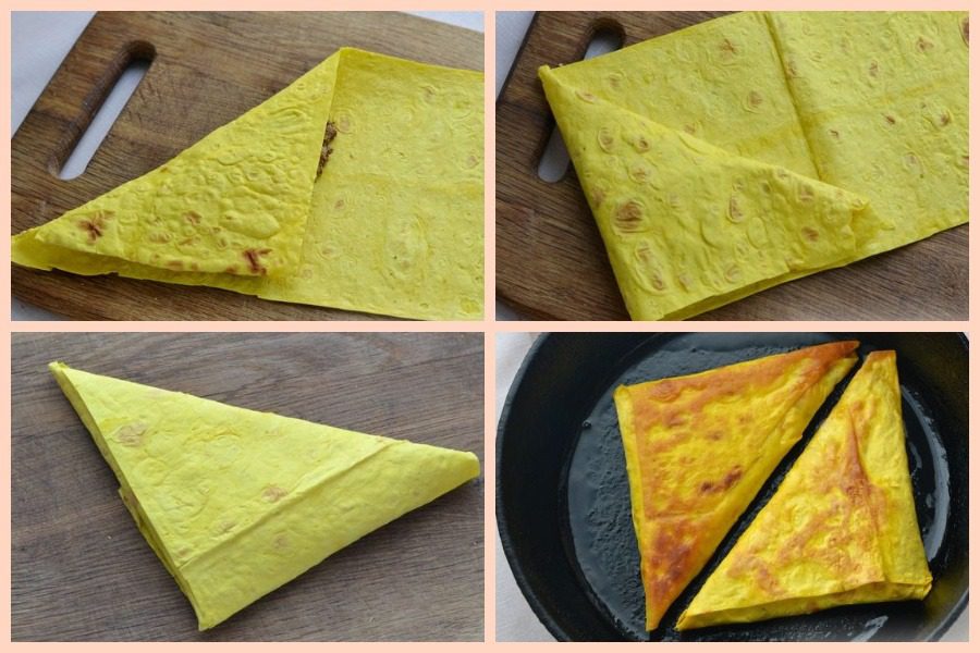 5. Загорніть кожен шматочок лаваша у форму трикутника.
