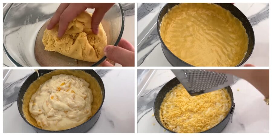 - У підготовлену форму розкладіть руками тісто, створюючи бортики, як на фото.