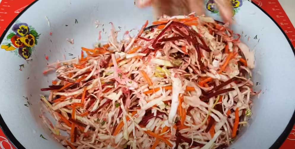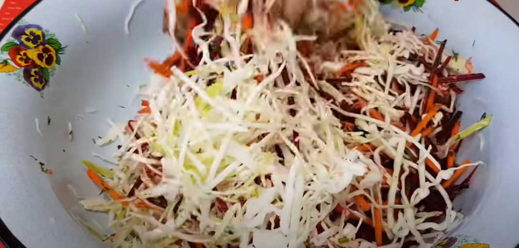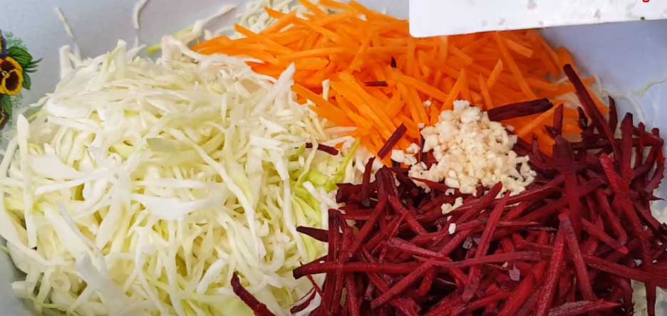 Кількість указаних інгредієнтів можете регулювати залежно від власного смаку. Сіль і спеції теж додавайте, орієнтуючись на власні уподобання. Моркву, буряк та часник позбавте шкуринки. З капусти видаліть верхні підсохлі листи.