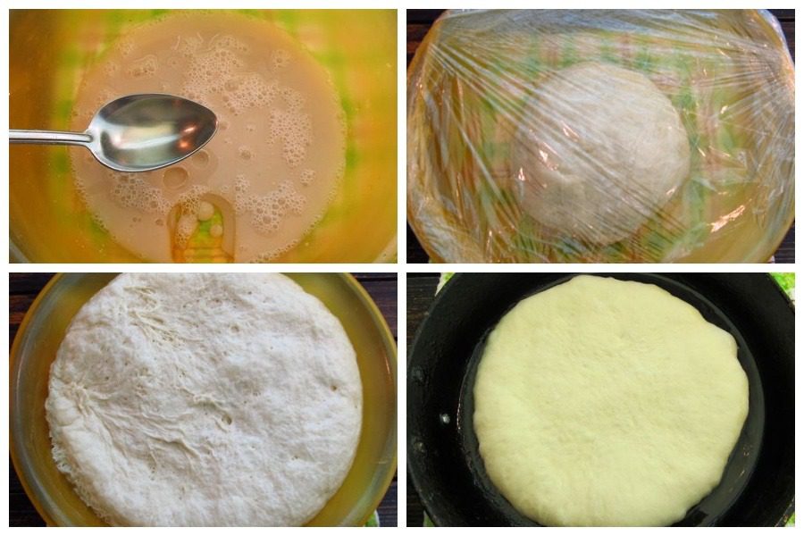 - Змастіть миску олією, викладіть туди тісто і прикрийте харчовою плівкою. Залиште в теплому місці на 50 хвилин для підйому.