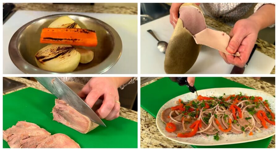 - Як тільки язик приготувався, витягніть його з каструлі й одразу залийте крижаною з льодом водою на 5 хвилин. Після того він легко відчиститься.