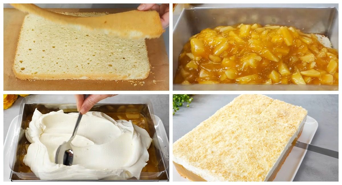Такий торт складається з коржа, яблучного пудингу та крему.