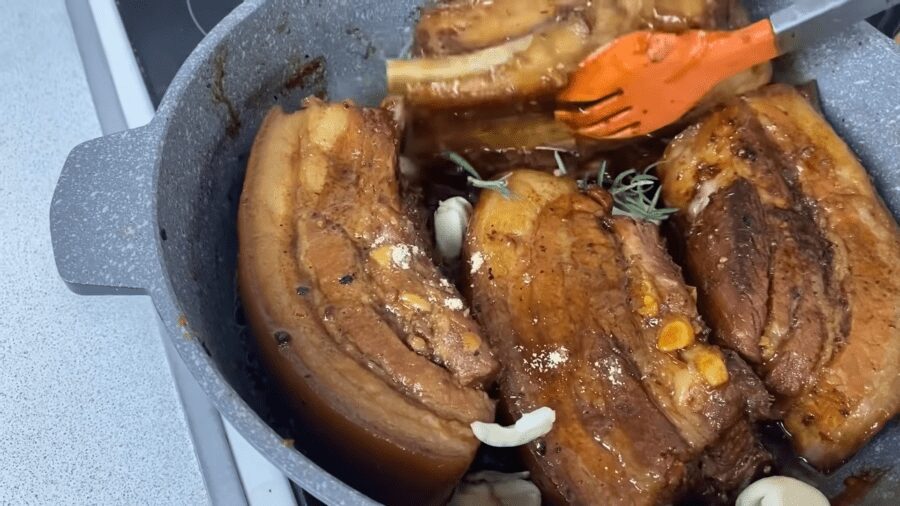 Якщо ви хочете урізноманітнити свій святковий стіл цікавими закусками, або просто порадувати свого чоловіка смачною стравою, приготуйте свинячу грудинку у спеціях. Вона виходить неймовірно ніжною і тане у роті. Секрет цієї грудинки у тому, що вона томиться на маленькому вогні у неймовірно смачному соусі, який складається із пива, соєвого соусу та різноманітних спецій. Виходить неймовірно смачно.