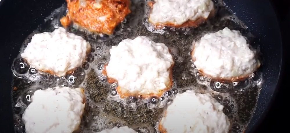 Поставте пательню на вогонь. Влийте олію, щоб розігрілася. Ложкою викладайте котлети на сковорідку. Смажте під кришкою на середньому вогні. Коли з’явиться золотава скоринка, переверніть на інший бік. Підсмажте до готовності.
