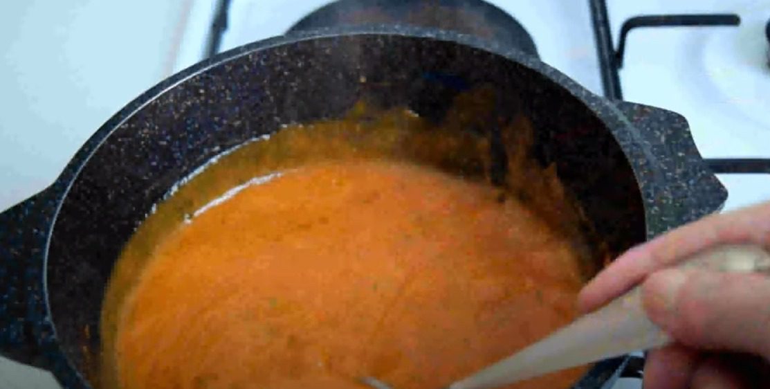 У каструлю з товстим дном налийте олію та вершкове масло. Поставте на невеликий вогонь і розтопіть жир. Додайте борошно й ретельно розмішайте, щоб не було грудочок. Витримайте трішки на вогні, потім додайте томатну пасту. Ще раз перемішайте.