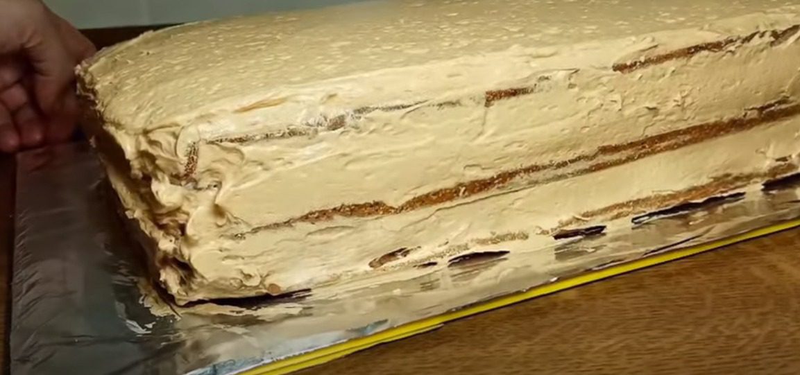Тепер беріться до приготування крему. Вершкове масло й згущівка мають бути не холодними, тому дістаньте їх із холодильника завчасно. Спочатку поріжте масло на шматочки й збийте блендером до пишної білої маси. Додайте відразу всю варену згущівку. Перебийте блендером. Буквально пів хвилини. Довше не треба.