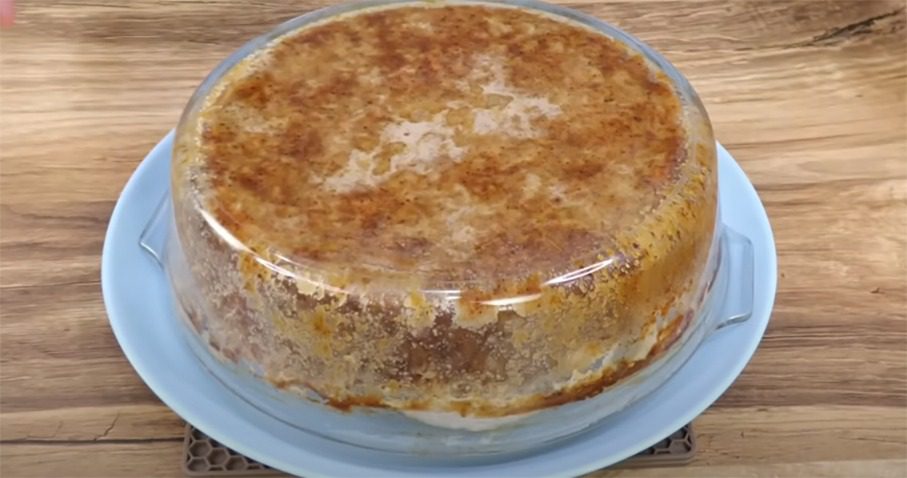 Випікайте близько 40 хвилин. Усе залежить від розмірів форми та товщини шару запіканки. Коли дістанете з духовки, й випічка трішки прохолоне, прикладіть до форми тарілку, переверніть готову страви на неї. Можете прикрасити сметаною, в яку додайте подрібнений зубчик часнику та нарізану зелень.