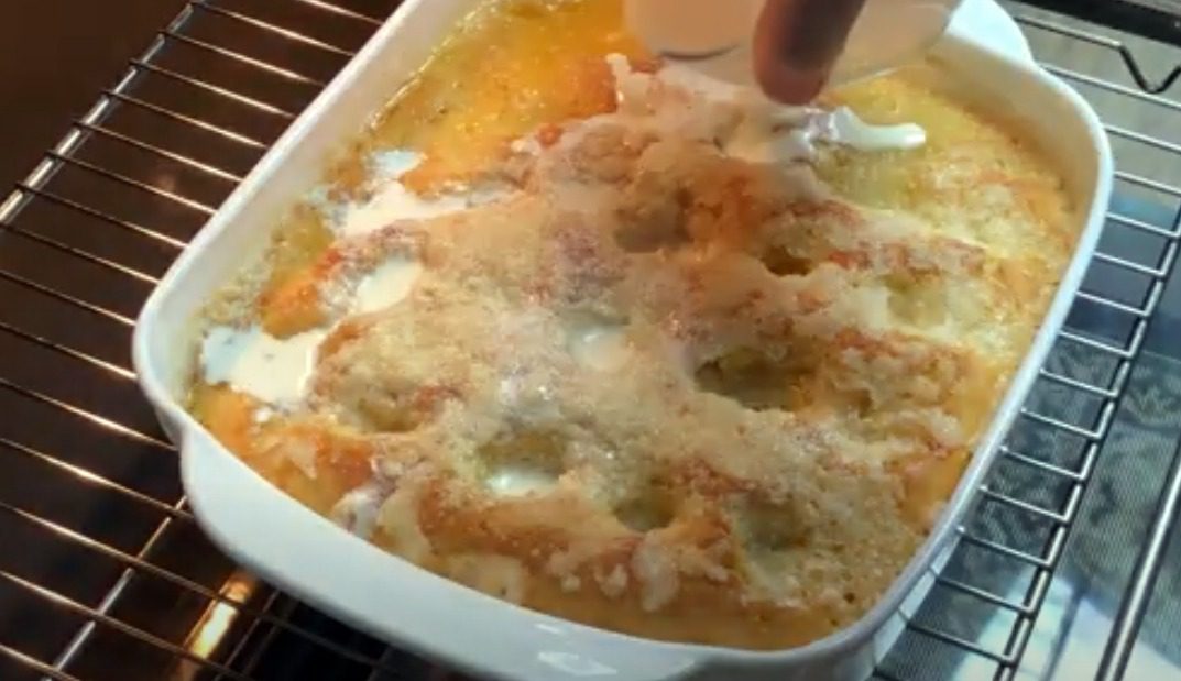 Випікайте цукровий пиріг близько 30 хвилин. Дістаньте, полийте вершками й поверніть назад у духову шафу ще на 10 хвилин. Витягніть готову випічку і дайте трішки прохолонути. Найсмачнішим французький пиріг є у теплому вигляді.