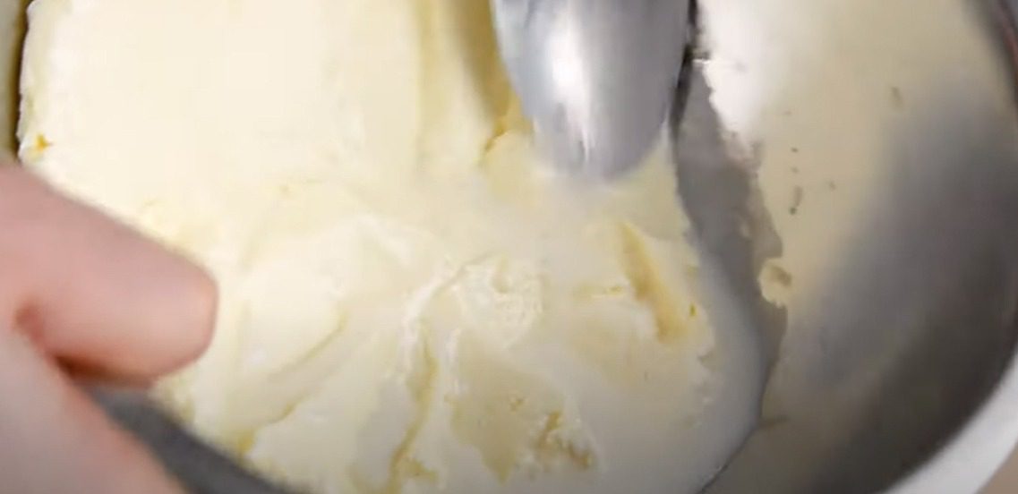 Дістаньте сметану з холодильника, щоб набула кімнатної температури. Збийте її міксером на найвищій швидкості. За 1 хвилину структура сметани суттєво зміниться. Через 2 хвилини почне відділятися пахта.