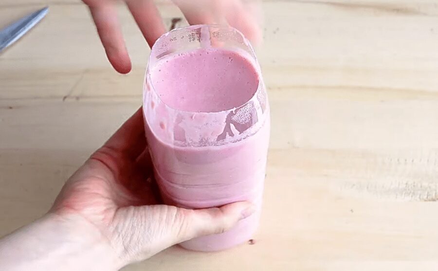 Беремо звичайну пластикову пляшку, яка слугує формою для ковбаси. Відрізаємо у такої пляшки верхню частину і виливаємо у форму з пляшки отриману масу.