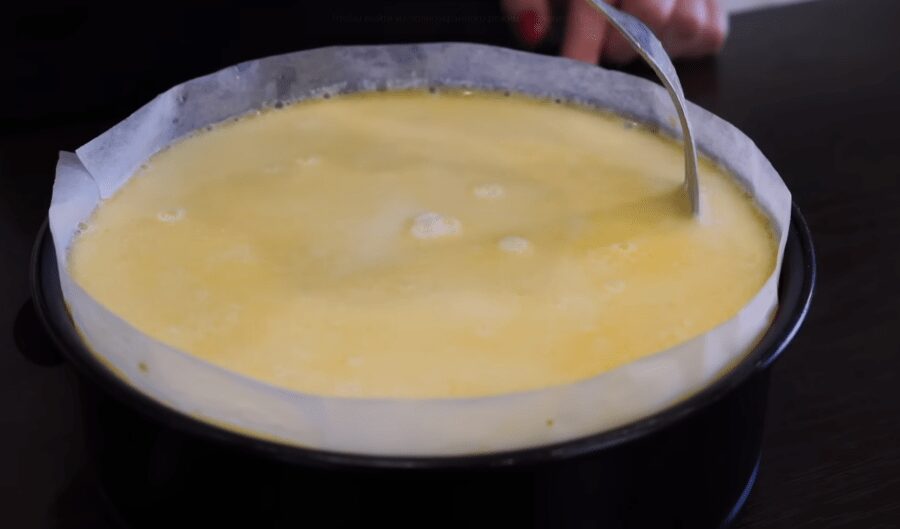 Беремо форму для випічки діаметром 20 см. Дно та стінки форми вистеляємо пергаментним папером і змащуємо вершковим маслом.