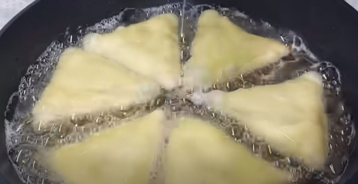 Вилийте олію на пательню і дайте закипіти. Викладайте біляші на сковорідку швом донизу. Вони мають плавати, не торкаючись дна. Коли зарум’яняться з одного боку, переверніть на інший. Викладайте на паперовий рушник.