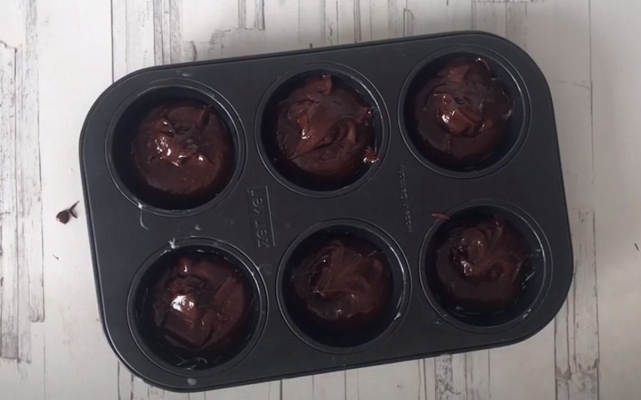 Формочки для кексів ретельно змастіть вершковим маслом, навіть якщо вони у вас силіконові. Наповніть їх тістом. Випікайте фондани в духовці, яку завчасно розігрійте до 200 градусів. На це піде близько 9 хвилин, а, можливо, й трішки менше.