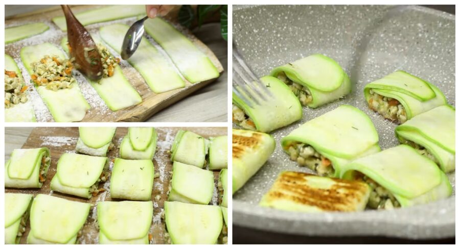 Кабачкові роли з курочкою у пательні