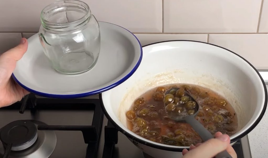 Щойно достигає аґрус, треба збирати плоди й братися до приготування варення. Якщо додати вишневе листя, вийде просто королівський смарагдовий відтінок солодощів.