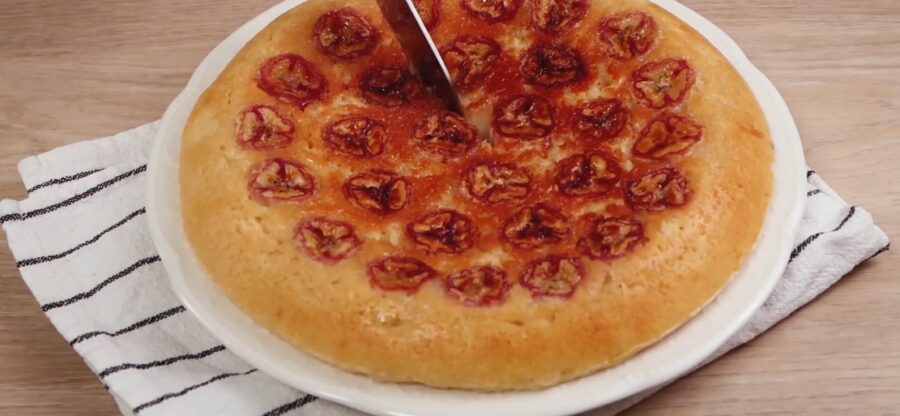 Накриваємо пиріг кришкою і ставимо на смажитися на маленькому вогні. Пиріг буде готуватися близько 40 хвилин кришку за цей час підіймати не потрібно. Через 40 хвилин перевірте готовність пирога за допомогою зубочистки: вона має залишатися сухою. Пиріг перевертаємо на тарілку низом доверху і подаємо до столу.