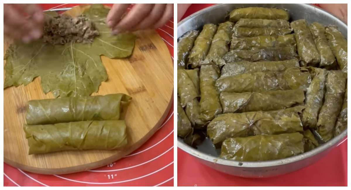 Спочатку займіться підготовкою листя. Для цього його добре промийте, а тоді бланшуйте у киплячій воді протягом 1-2 хвилин, щоб воно стало м’яким та змінило колір. Потім відразу ж занурте у холодну воду й обсушіть.