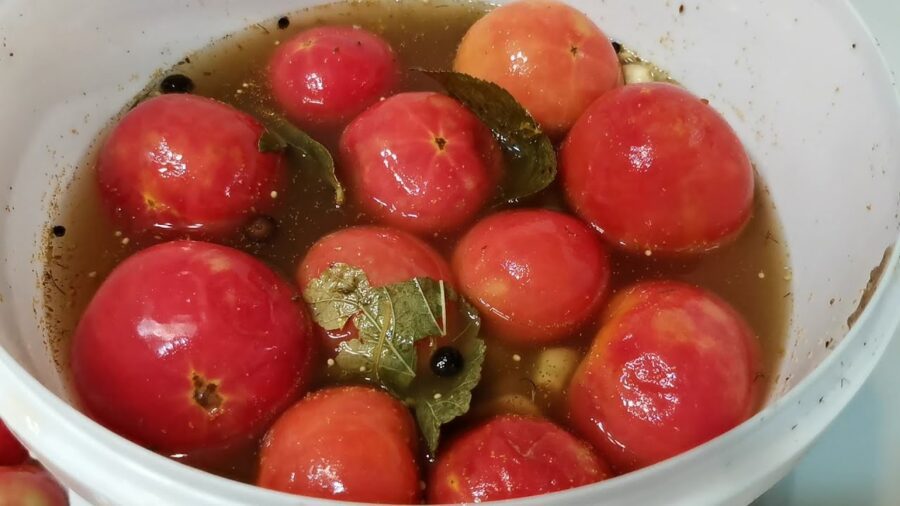 Для того, аби приготувати розсіл, потрібно розчинити сіль у 6 літрах води та додати цукор. Розмішайте, поки всі інгредієнти не розчиняться, а потім залийте розсіл у банки з помідорами. Поставте їх у тарілку та нещільно прикрийте капроновими кришками. Залиште на три дні.