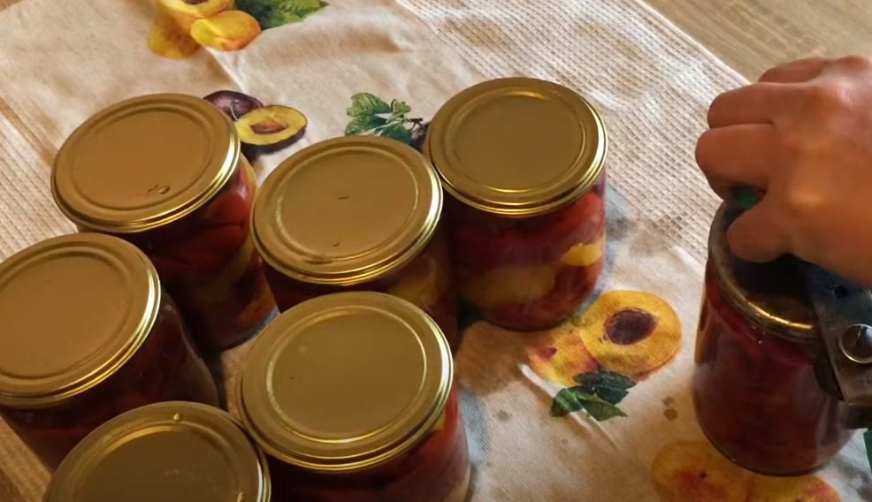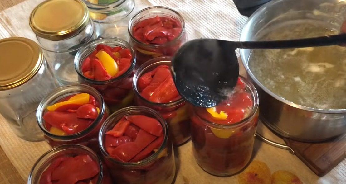 Розкладіть перець по баночках, залийте киплячим маринадом. Накрийте прокип’яченими кришками. Закрутіть. Переверніть слоїки кришками донизу й тепло укутайте. Не чіпайте протягом доби. Лише після цього перенесіть болгарський перець у медовій заливці на зберігання в прохолодне темне місце.