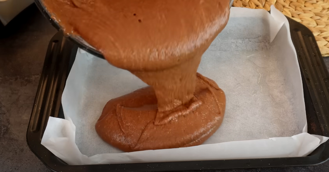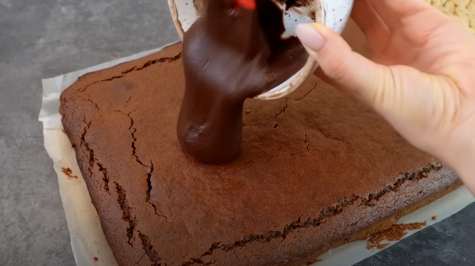 Розрівняйте верх. Випікати потрібно за температури 180 градусів у режимі “Верх-низ” близько 35 хвилин. Допоки шоколадний пиріг випікається, приготуйте глазур, яку навіть не доведеться варити.