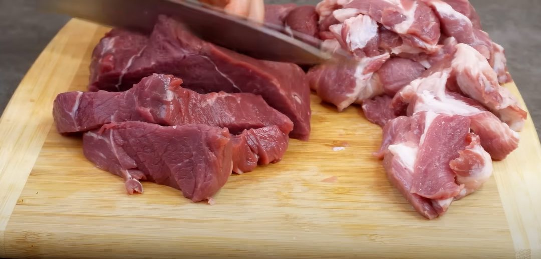 1 кг будь-якого м’яса перекрутіть на м’ясорубці. Найсмачніше виходить, якщо поєднати 2 види, наприклад, яловичину та свинину, чи будь-яку іншу пару. Пропустіть м’ясо, нарізане на шматочки, крізь м’ясорубку.
