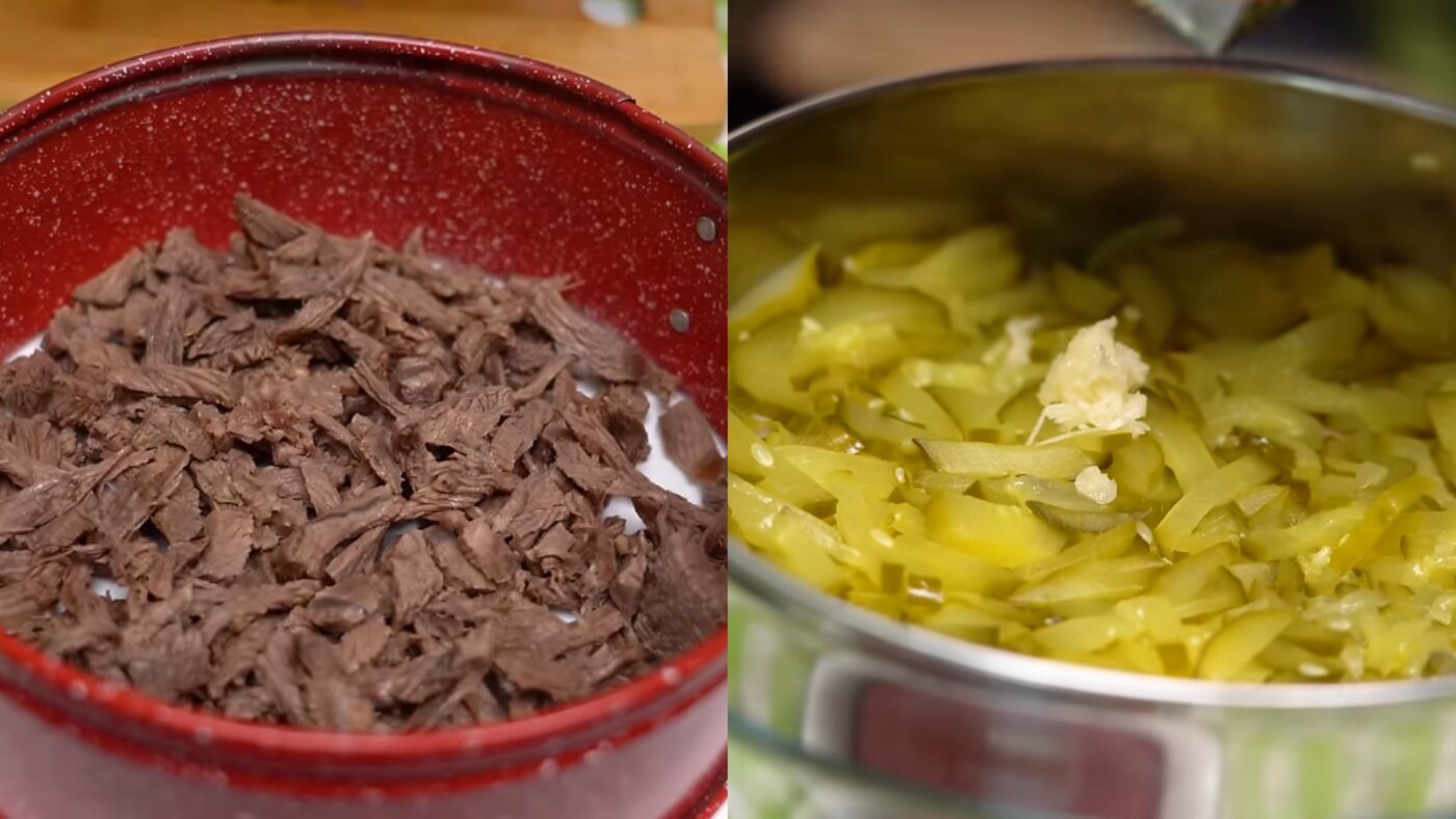 - Відварене м’ясо (курка або яловичина) — 250–300 г