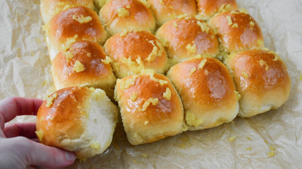Випікайте пампушки приблизно 20-25 хвилин до золотистої скоринки. Тим часом подрібніть часник і зелень, змішайте їх із кількома ложками води та трішки олії. Коли пампушки виймете з духовки, ще гарячими щедро змастіть їх часниковою заправкою. Вони смакують як теплими, так і холодними.