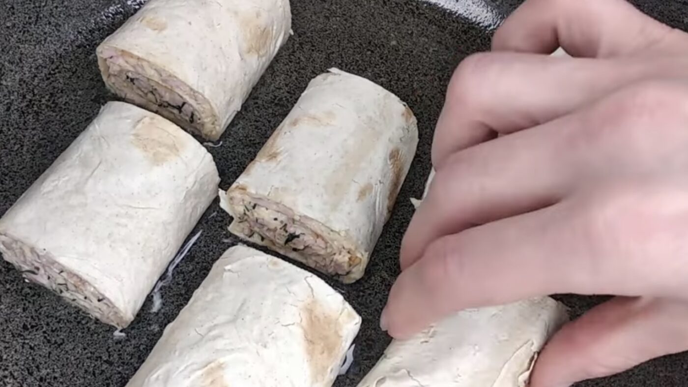 Сковорідку розігрівають з невеликою кількістю олії. Лаваші із начинкою кладуть швом донизу, трохи притискають і обсмажують на середньому вогні з обох боків до золотистої скоринки. Виходить хрустка скоринка зовні й соковита начинка всередині.