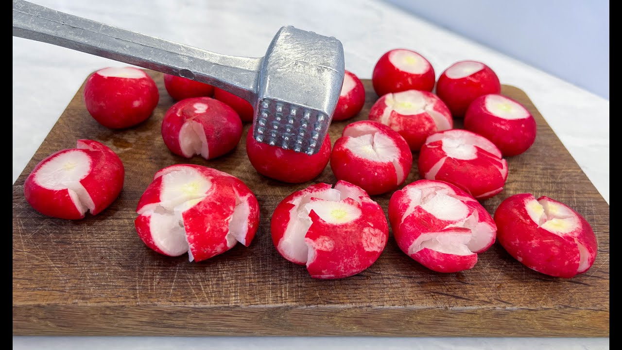 Редиску потрібно добре помити й трохи “підбити”. Це не жарт, саме відбити молотком для м’яса або качалкою. Завдяки цьому маринад глибше проникне всередину і зробить овоч особливо ароматним.