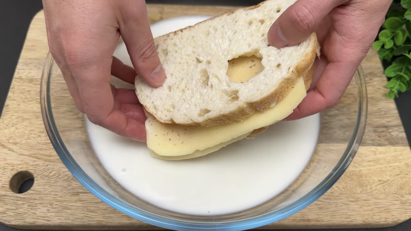 Їх занурюють у молоко з обох боків, щоб тост після приготування вийшов м’яким усередині та рум’яним зовні.