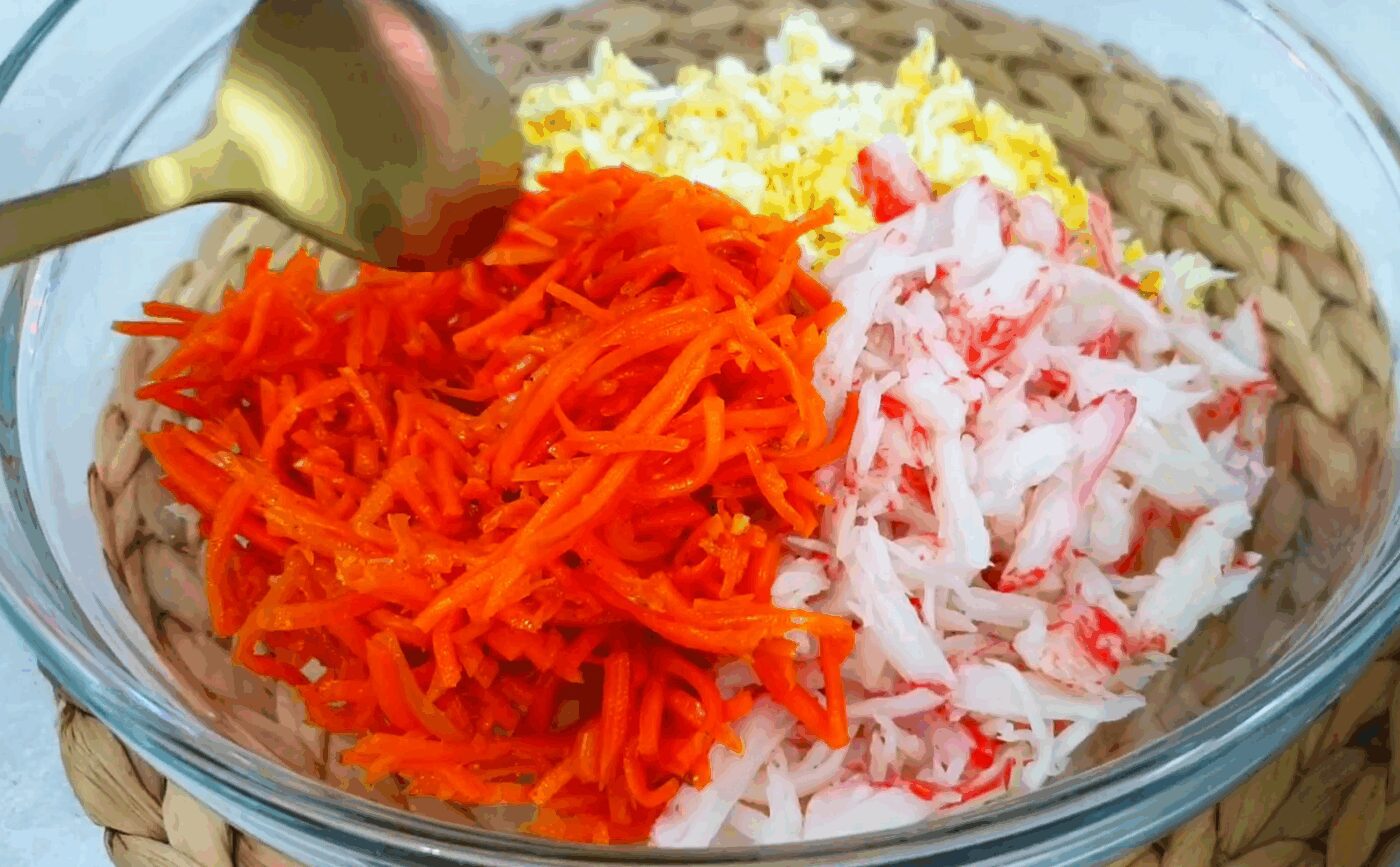 Салат виходить дійсно дуже смачним, ніжним і водночас пікантним. Плавлений сирок і яйця надають ніжності, а морква по-корейськи – соковитості і пікантності.