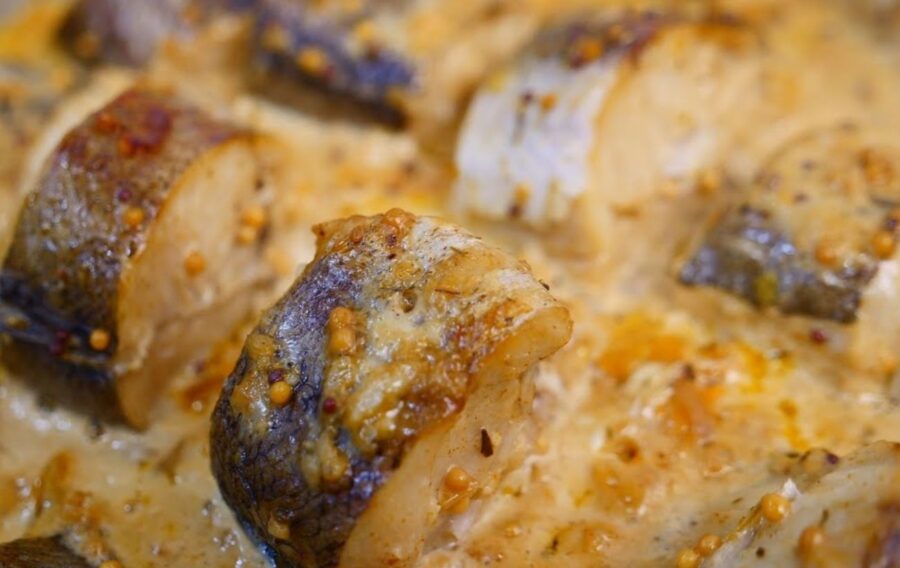 Для того, щоб риба розкрила весь свій смак, потрібно обрати якісне філе без кісток. Його нарізають довгастими смужками, підсолюють і дають трохи полежати. Далі — цибуля. Її чистять і ріжуть півкільцями. У сковорідці розтоплюють вершкове масло, і все смажать до золотистої скоринки.